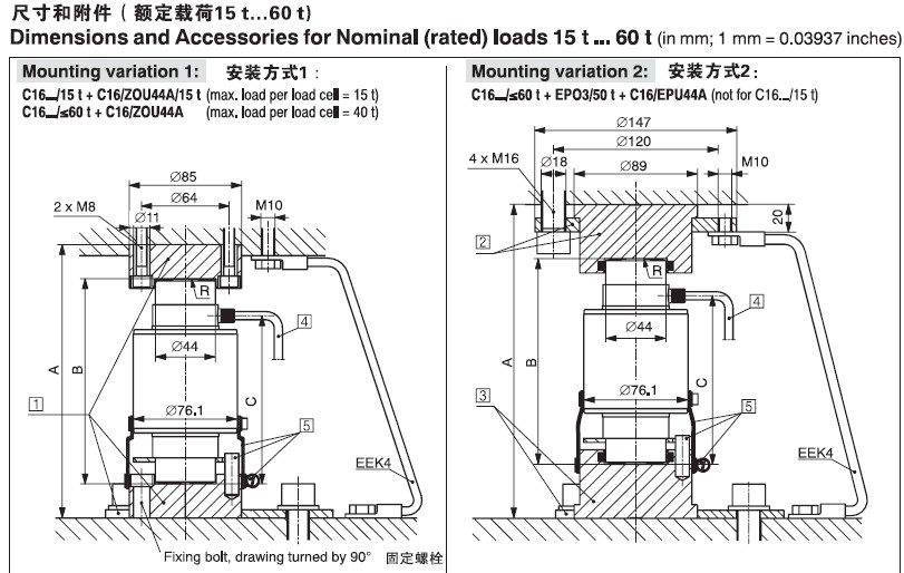 C16AD1稱重傳感器分度為 5,000d (OIML R60) 最高到 10,000 d (NTEP class III LM) ,可并行連接,并可以四角調(diào)整 ,