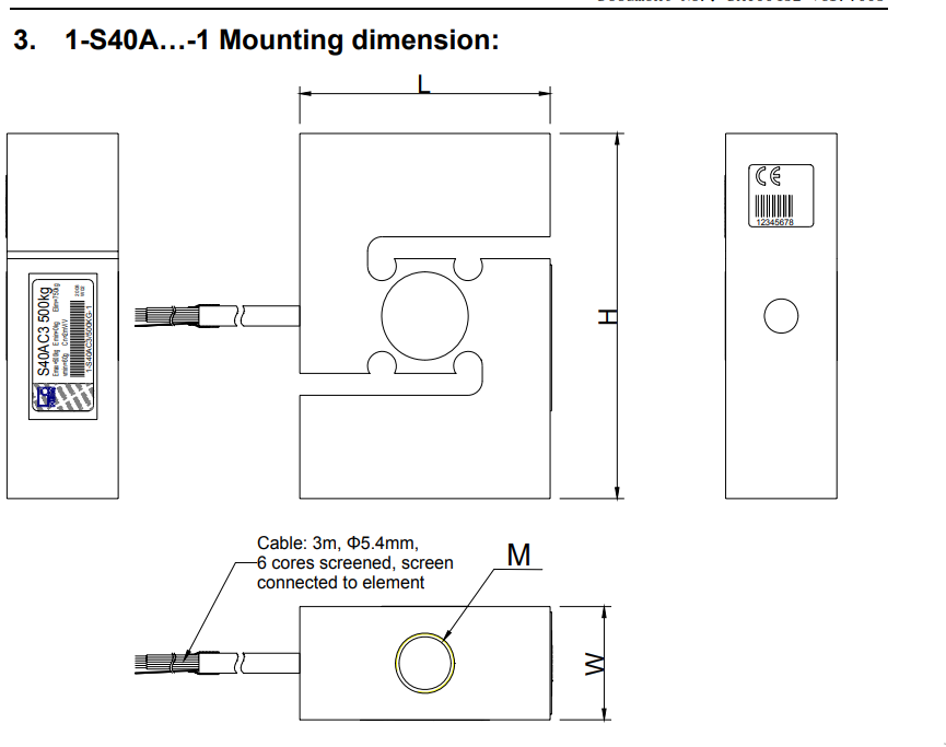 wYQ廣州南創(chuàng)電子科技有限公司德國HBM稱重傳感器S40AC3/1t尺寸圖:wYQ廣州南創(chuàng)電子科技有限公司