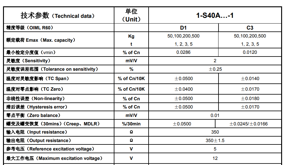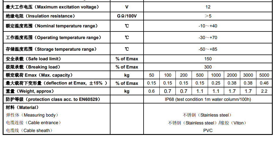 wYQ廣州南創(chuàng)電子科技有限公司德國HBM稱重傳感器S40AC3 1t產(chǎn)品技術(shù)參數(shù):wYQ廣州南創(chuàng)電子科技有限公司