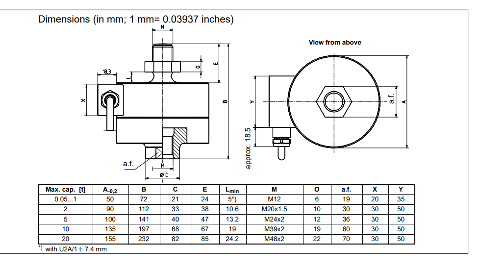 6ze廣州南創(chuàng)電子科技有限公司德國HBM稱重傳感器U2AD1/5t產(chǎn)品尺寸圖:6ze廣州南創(chuàng)電子科技有限公司