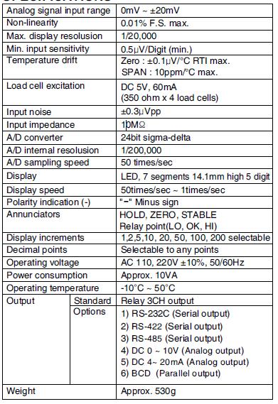 ±2mV/V±1% ,LC驗(yàn)證最小檢定分度:350Ω±1%〜
