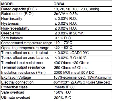 OBBA-20kg傳感器部份型號(hào):