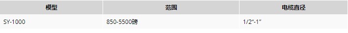 *實(shí)際張力范圍取決于所測試材料的類型。顯示的值適用于平均低碳鋼絲繩。根據(jù)電纜直徑選擇型號。