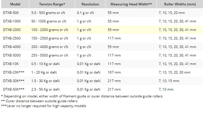 張力。10張力范圍從5.0-500 cN到0.5-50 daN