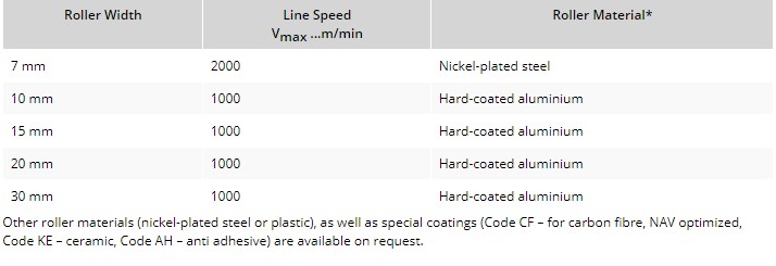 寬度從7毫米到30毫米的雙法蘭外導(dǎo)輥(可選單法蘭輥)