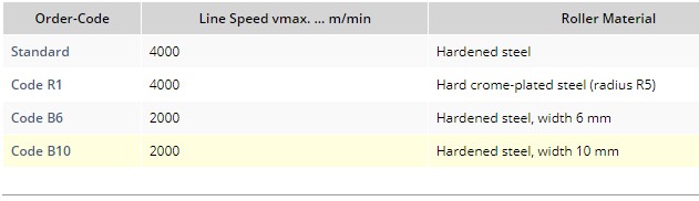 可選的U槽滾子(代碼“ R1”),平圓柱滾子,法蘭之間的寬度為6mm(代碼“ B6”)或法蘭之間的寬度為10mm(代碼“ B10”)