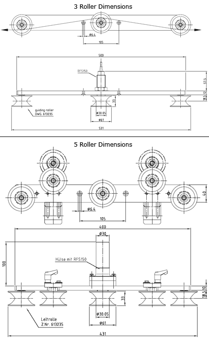 導(dǎo)輥 | V槽,U槽或扁圓柱(帶或不帶法蘭) |