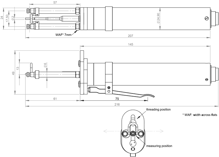 Special clip type lever for safe and comfortable threading even at high temperatures at the measuring location.