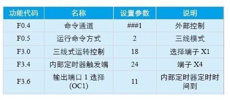 當(dāng)有紅外傳感器開關(guān)輸入信號時端子x1、oc1、cm與fwd組成三線模式,當(dāng)f6.0設(shè)定的內(nèi)部定時器定時時間到時,oc1輸出0.5s的斷開信號, 變頻器停止運行。當(dāng)有人再次觸發(fā)紅外傳感器開關(guān)信號時,變頻器又被啟動。當(dāng)在設(shè)置的時間內(nèi),紅外傳感器開關(guān)信號再次被觸發(fā)時,定時器重新計時,保證乘坐扶 梯的人能到達(dá)目的地,只到無人時扶梯停止。扶梯從一端到另一端的時間通常為40秒左右,這里我們設(shè)定為40秒,此參數(shù)可根據(jù)現(xiàn)場實際情況來設(shè)定。