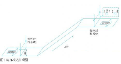 在扶梯上下兩端各裝一對立桿,此桿用來安裝固定紅外感應(yīng)開關(guān)和扶梯上下行指示標(biāo)識。另外在扶梯上端對桿上還要安裝一對鑰匙開關(guān),一個是節(jié)電和市 電模式切換開關(guān),另一個是上行、停止、下行模式選擇開關(guān)(曳引機(jī)安裝在扶梯上端電井內(nèi),故開關(guān)就近選擇安裝)。當(dāng)節(jié)電/市電切換開關(guān)選擇市電時,自動扶梯 開、停、上下行方式與未改造前一致。當(dāng)節(jié)電/市電開關(guān)選擇節(jié)電時,扶梯自帶啟動開關(guān)、上下行開關(guān)無效,此時扶梯運行方向由安裝在立桿上的上行/停止/下行 開關(guān)來選擇控制。扶梯由紅處感應(yīng)開關(guān)啟動。當(dāng)有人走上扶梯時,首先會觸發(fā)紅外傳感器開關(guān)。當(dāng)系統(tǒng)檢測到紅外傳感器開關(guān)信號時,電梯就會被啟動,并開始計 時。在計時期間,如果有第二個人走上扶梯,系統(tǒng)會重新計時,直到設(shè)定時間結(jié)束,電梯便會自動停機(jī)。這樣實現(xiàn)了“人來自啟,人去自停”的運行模式,使扶梯顯 得更加人性化。