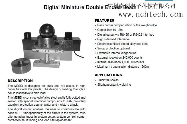 美國世銓Celtron MDB雙剪切梁式稱重傳感器專為卡車和鐵路的低配置高容量規(guī)模設(shè)計。在裝載過程中不易受負(fù)載影響。