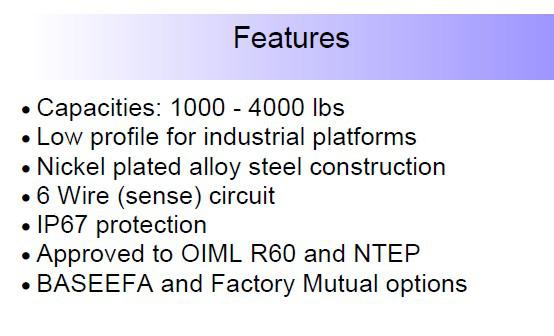Tedea特迪亞亨特利3410-4000lbs稱重傳感器應(yīng)用:美國(guó)Tedea 3410傳感器適合于低平面平臺(tái),托盤車稱重,車輛和筒倉(cāng)稱重采用不銹鋼材料3410-4000lbs稱重傳感器設(shè)計(jì),3410-4000lbs傳感器防護(hù)等級(jí)IP67。