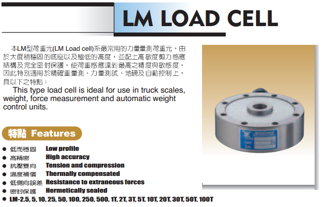 臺(tái)灣JIHSENSE荷重元LM-100kg特點(diǎn)Feature: