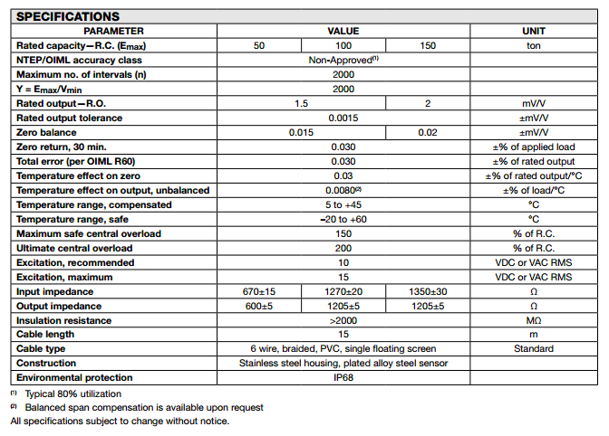 美國特迪亞tedea 122稱重傳感器系列所有量程如下:SOv廣州南創(chuàng)電子科技有限公司