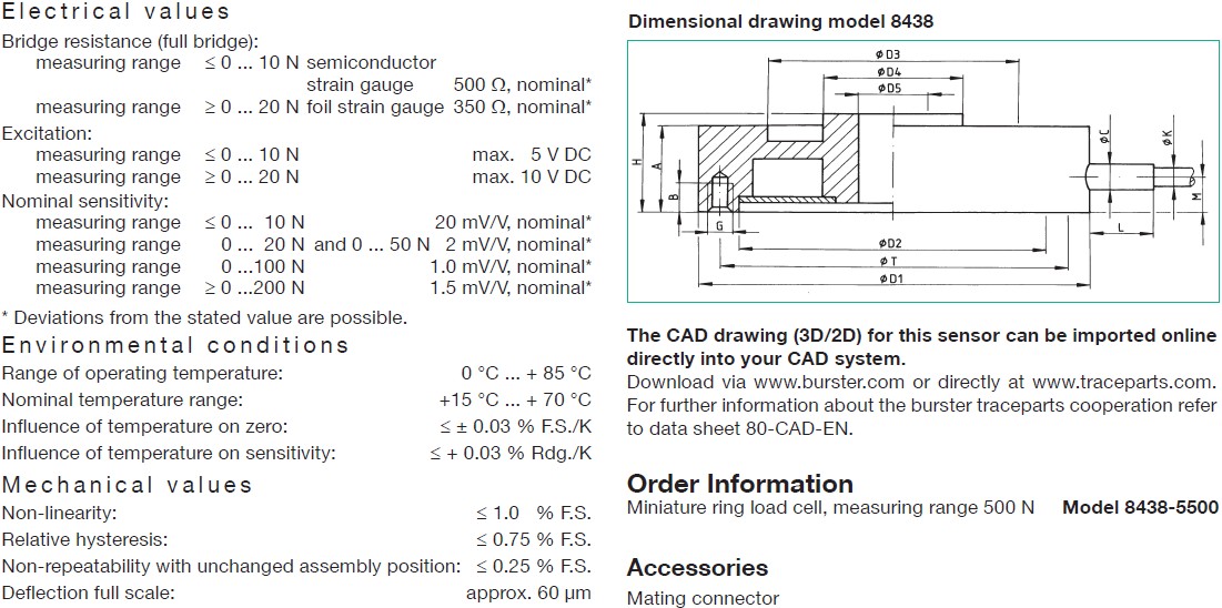德國(guó)Burster 8438-5010稱重傳感器描述: