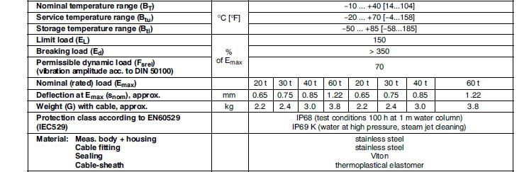 C16iC3稱(chēng)重傳感器系列額定容量 C16iC3/20T C16iC3/30T C16iC3/40T C16iC3/60T