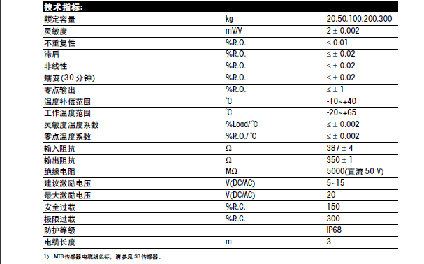 梅特勒托利多MTB-20 稱重傳感器技術(shù)指標: