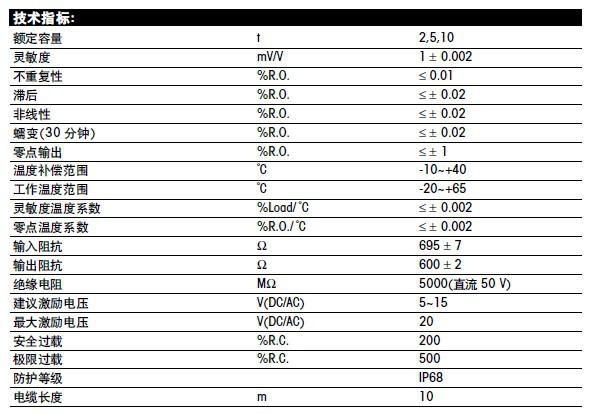 梅特勒托利多PGD-30稱重傳感器技術(shù)指標(biāo):