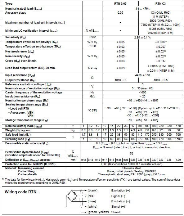 德國HBM RTNC3/33T稱重傳感器技術指標: