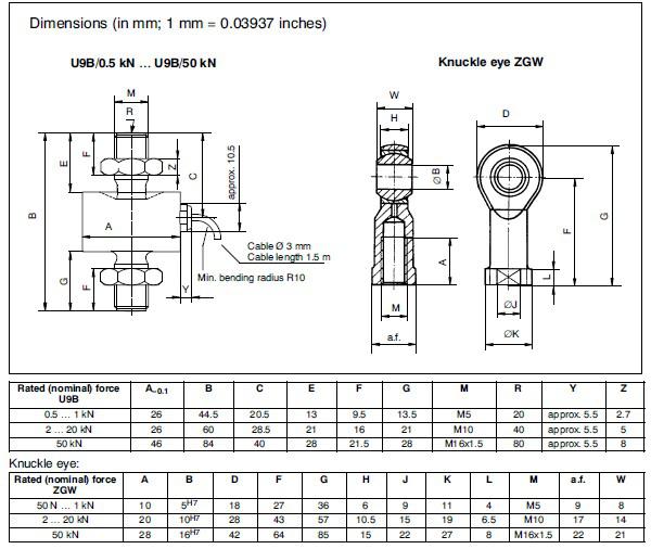 U9B額定力: 50N, 100N, 200N, 500N, 1kN, 2kN, 5kN, 10kN, 20kN, 50kN