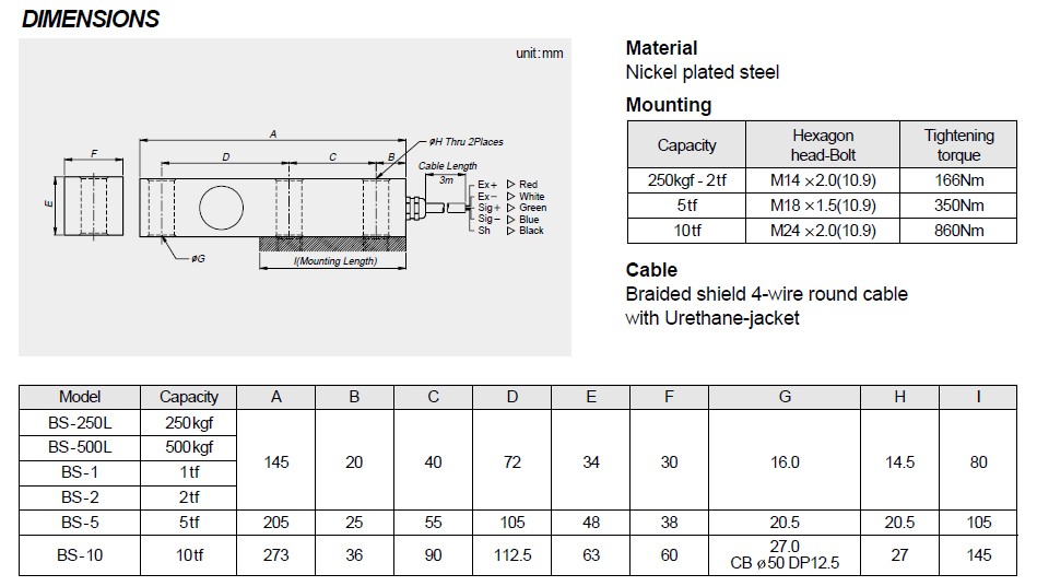 韓國(guó)CAS BS-3T傳感器參數(shù):