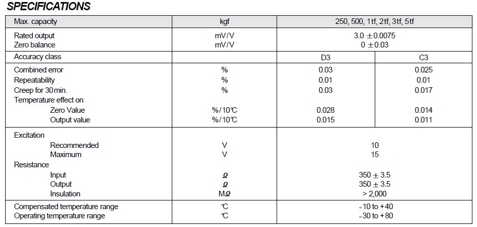韓國CAS BSA-250L稱重傳感器其它型號: