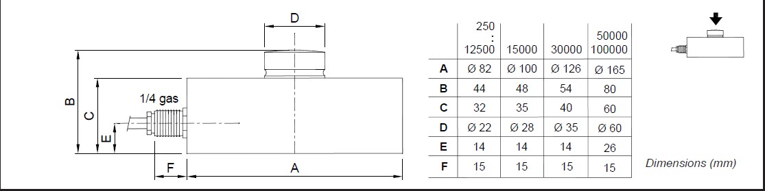 Laumas CBL-10000kg稱重傳感器外形尺寸選型(mm)