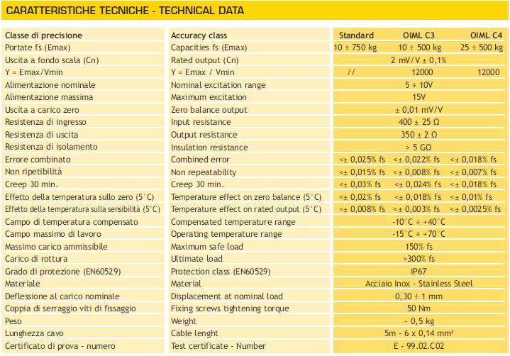能力FS (的Emax )10 ÷ 750公斤10 ÷ 500公斤25 ÷ 500公斤