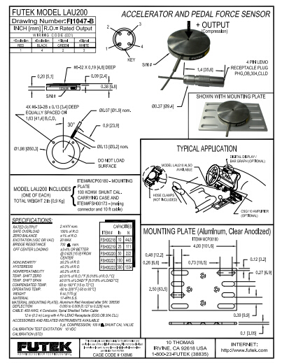 美國FUTEK力傳感器LAU200規(guī)格圖:
