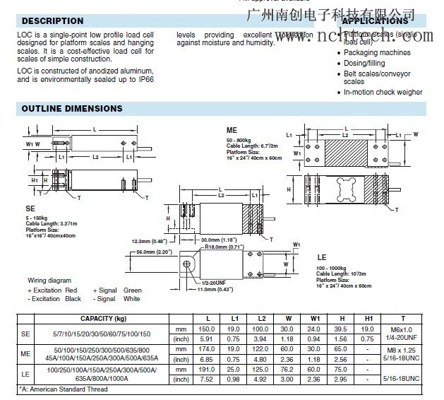 應(yīng)用:平臺(tái)秤(單支傳感器) 包裝秤 定量給料 皮帶秤 分選秤