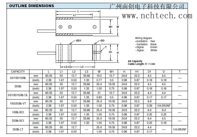 美國世銓MBB-100kg稱重傳感器技術(shù)參數(shù):
