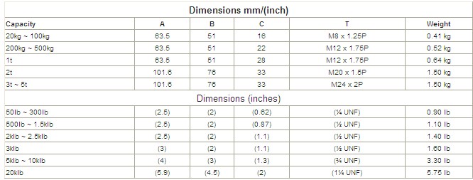 它擁有最大的容量范圍我們的任何稱(chēng)重傳感器:50磅到20klb(UNF螺紋)英制20公斤到5噸(公制螺紋),公制。