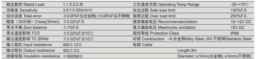 產(chǎn)品品牌:美國柯力(Amcells)SQBL-A-1.5T稱重傳感器