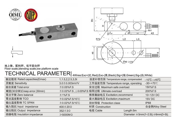SQC-A-2.5T稱重傳感器適合在電子平臺秤、料斗秤等各類電子稱重設(shè)備