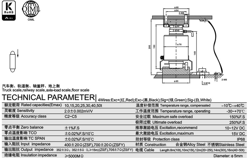 產(chǎn)品型號: ZSF-A-10T柱式稱重傳感器