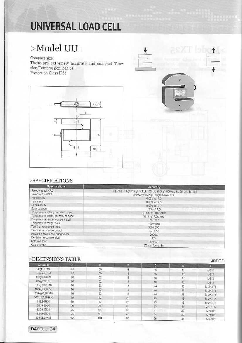 DAcell UU 稱重傳感器技術(shù)參數(shù):