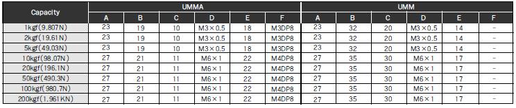 UMM-K10傳感器部份型號: