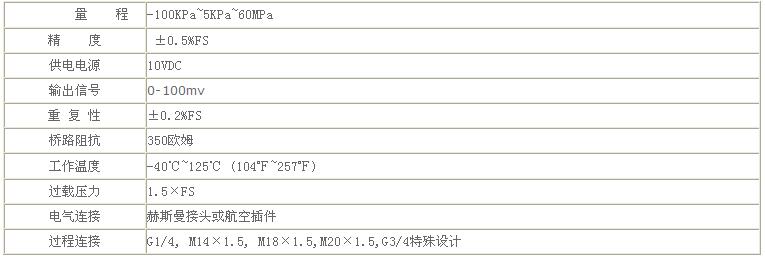零點(diǎn)輸出≤%F·S±靈敏度溫度系數(shù)≤%F·S/20℃±0.05