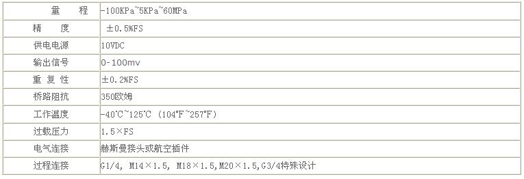 滯后≤%F·S±0.03〜PT214壓力靈敏度溫度系數(shù)≤%F·S/60℃±0.05
