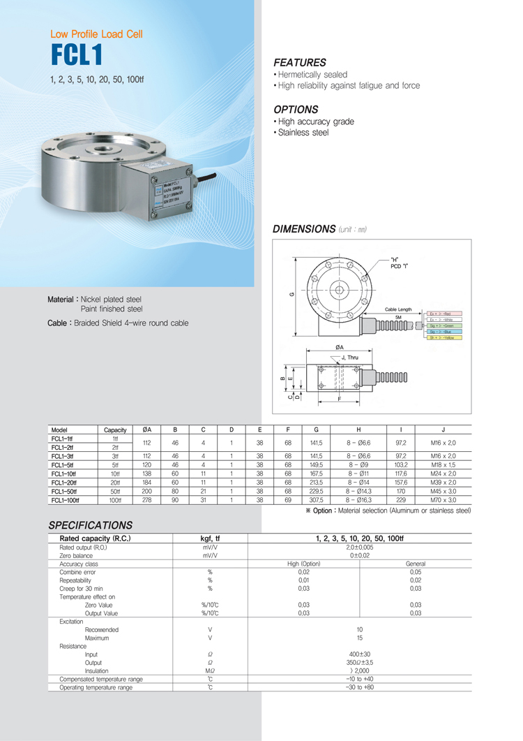 與韓國Fine稱重傳感器 FCL1-20T型號相似型號: