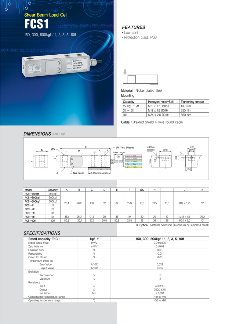 除韓國Fine稱重傳感器 FCS1-500KG型號之外的其它熱門型號: