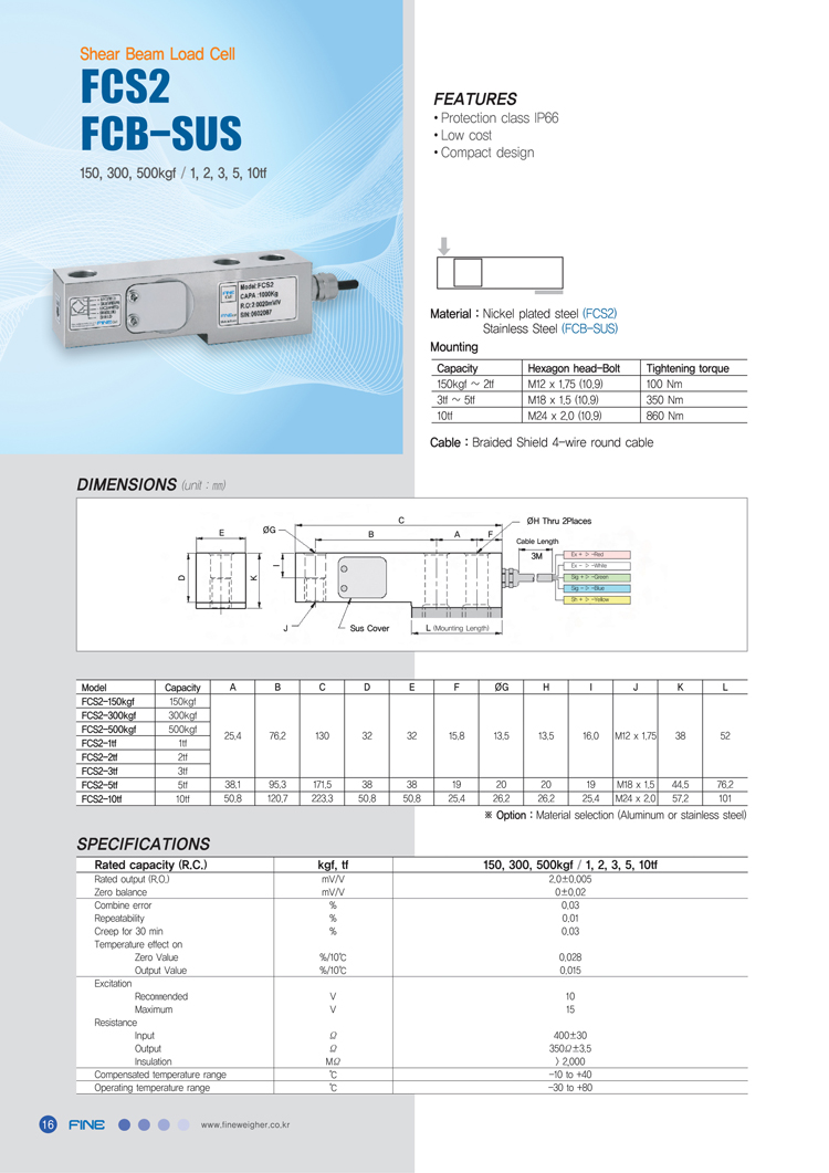 除韓國(guó)Fine稱重傳感器 FCS2-300KG型號(hào)之外的其它熱門型號(hào):