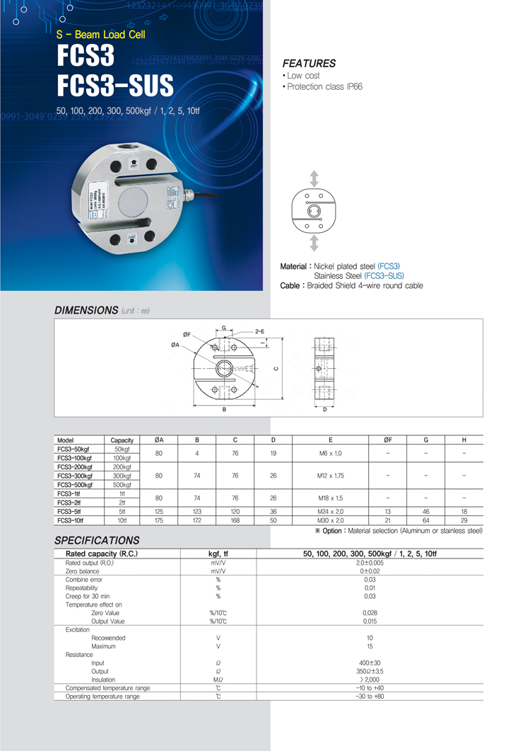 FCS3-50KG、FCS3-100KG、FCS3-200KG、FCS3-300KG、FCS3-500KG、FCS3-1T、FCS3-2T、FCS3-5T、FCS3-10T