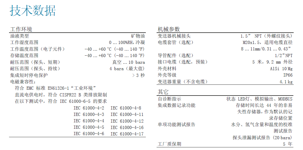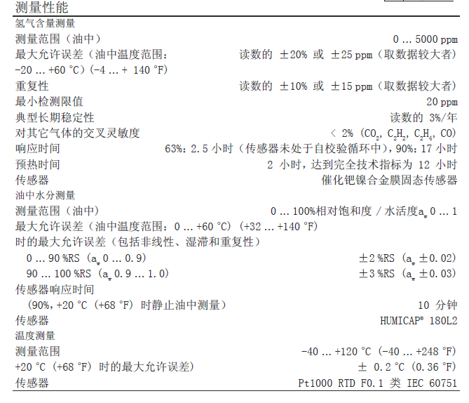 測(cè)量范圍(油中) :0 ... 5000 ppm