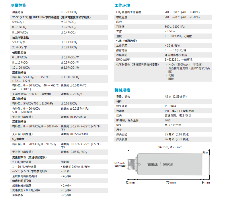 GMP251 具有廣泛的操作溫度范圍,適用于大量應(yīng)用。探頭也能在不同的條件下提供精確和穩(wěn)定的測(cè)量。