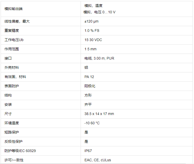 8oc廣州南創(chuàng)電子科技有限公司電子尺杰佛倫直線位移傳感器LTC-M-0075-S-XL0396相關(guān)內(nèi)容拓展閱讀:8oc廣州南創(chuàng)電子科技有限公司意大利杰佛倫gefran拉桿式直線位移傳感器又稱為拉桿式直線位移傳感器LTC-M-0075-S-XL0396,杰佛倫gefran位移傳感器 LTC-M-0110-S-XL0396是一種屬于金屬感應的線性器件,傳感器的作用是把各種被測物理量轉(zhuǎn)換為電量。在生產(chǎn)過程中,杰佛倫gefranLTC-M-0075-S-XL0396電子尺的測量一般分為測量實物尺寸和機械位移兩種。按被測變量變換的形式不同,位移傳感器可分為模擬式和數(shù)字式兩種。模擬式又可分為物性型和結(jié)構(gòu)型兩種。常用位移傳感器以模擬式結(jié)構(gòu)型居多, LTC-M-0110-S-XL0396拉桿式直線位移傳感器LTC-M-0050-S-XL0396包括電位器式位移傳感器、電感式位移傳感器、自整角機、電容式位移傳感器、電渦流式位移傳感器、霍爾式位移傳感器等。數(shù)字式位移傳感器的一個重要優(yōu)點是便于將信號直接送入計算機系統(tǒng),這種LTC-M-0110-S-XL0396拉桿式直線位移傳感器杰佛倫發(fā)展迅速,應用日益廣泛。工作原理:電位器式位移傳感器,它通過電位器元件將機械位移轉(zhuǎn)換成與之成線性或任意函數(shù)關(guān)系的電阻或電壓輸出。普通直線電位器和圓形電位器都可分別用作直線位移和角位移傳感器。但是,LTC-M-0075-S-XL0396位移傳感器杰佛倫gefran為實現(xiàn)測量位移目的而設(shè)計的電位器,要求在位移變化和電阻變化之間有一個確定關(guān)系。電位器式位移傳感器的可動電刷與被測物體相連。