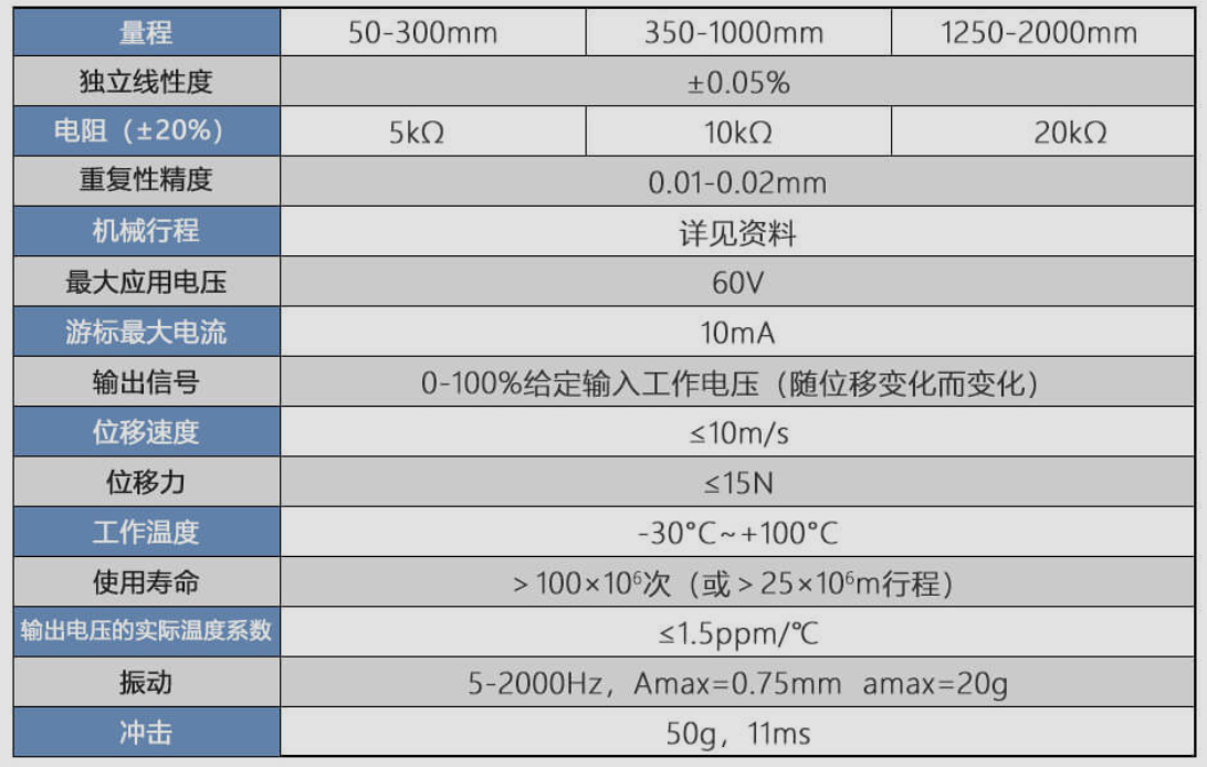 gOD廣州南創(chuàng)電子科技有限公司杰佛倫圓柱型位移傳感器PC-M-0100 PC-M-0130相關(guān)特點: gOD廣州南創(chuàng)電子科技有限公司PC直線位移傳感器(別名:電子尺,電阻尺,電位器,位移傳感器)原理:電位計原理,使用 2 個球節(jié)的機械固定和自對準連桿,最大角運動達 ± 30°,獨立線性度 ± 0.05%,可重復性 0.01 毫米,無限分辨率。超出理論電氣行程后無電氣信號輸出變化安裝更簡單。輸出直流電壓信號,也可以通過內(nèi)置或者外置的變送模塊講信號轉(zhuǎn)換成標準的0-5V、0-10V或者4-20mA直流信號,也可以遠距離傳輸控制要求。適用于各種高機械強度場合的位移測量。