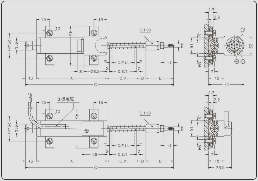 jTr廣州南創(chuàng)電子科技有限公司杰佛倫gefran電子尺PY-3-C-025-XL0202 PY-3-C-050-XL0202尺寸圖:jTr廣州南創(chuàng)電子科技有限公司
