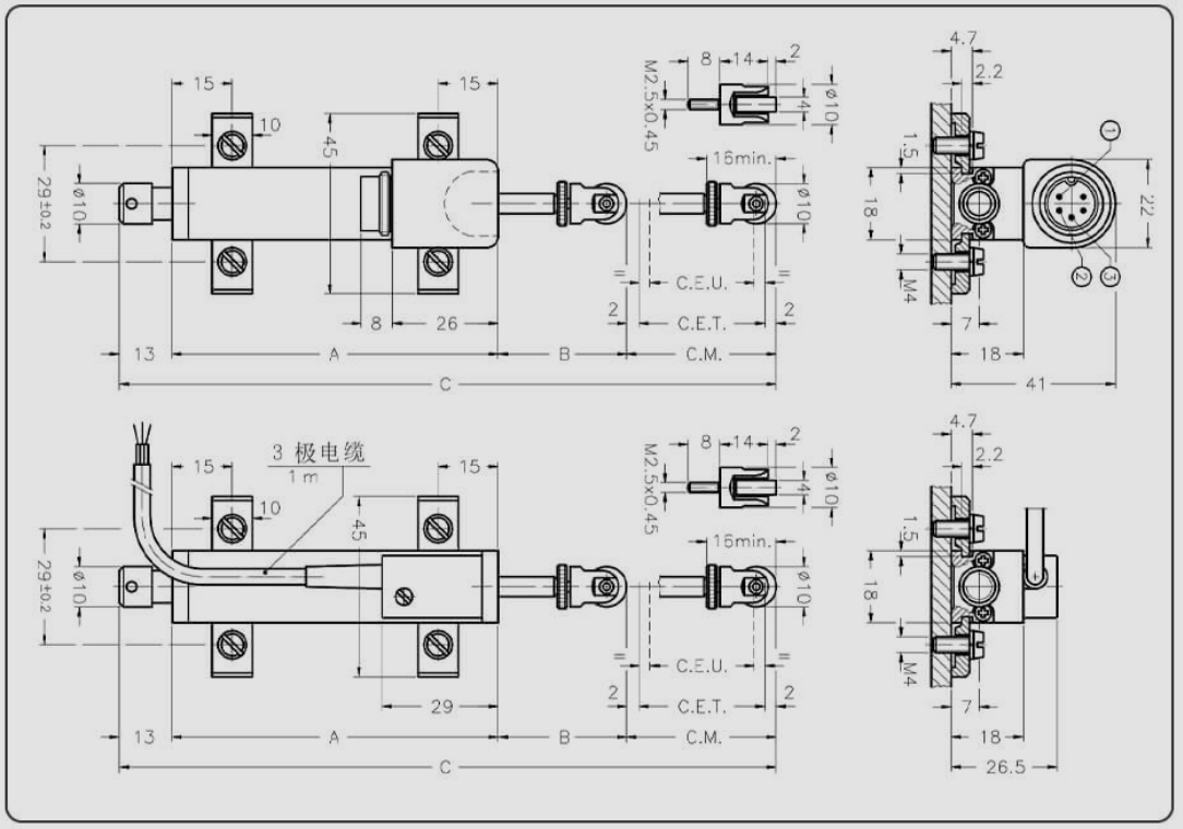 1ZU廣州南創(chuàng)電子科技有限公司杰佛倫gefran電子尺SIN-W-100-P SIN-W-050-P尺寸圖:1ZU廣州南創(chuàng)電子科技有限公司