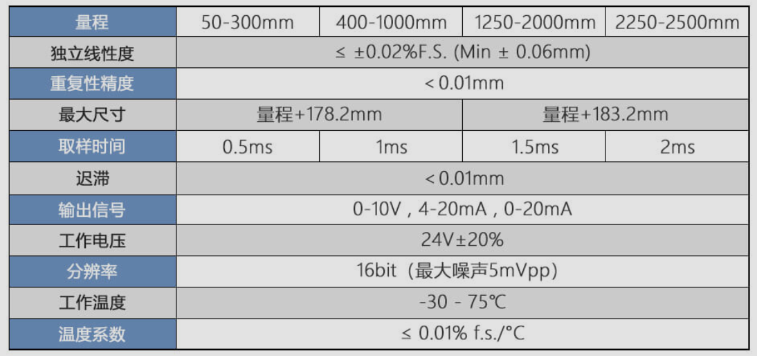 Lv3廣州南創(chuàng)電子科技有限公司杰佛倫直線位移傳感器WRP-A-B-350-E-1 WRP-A-B-400-E-1相關特點: Lv3廣州南創(chuàng)電子科技有限公司WRP-A系列磁致伸縮位移傳感器采用了HYPERWAVE磁致伸縮技術。模擬接口可提供各種電壓或電流輸出范圍,確保安裝更簡便,更容易適應現(xiàn)有系統(tǒng)。游標上沒有電氣接觸,避免了磨損,延長了使用壽命。參考了非線性、可重復性和滯后的高精度測量。高抗振動、抗機械沖擊,適用于惡劣的工業(yè)環(huán)境。